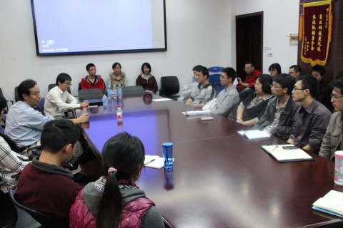 10月27日下午1点半,第二场交流会在光学楼525举行。首先和同学们分享经验的是光科系2004届硕士毕业生刘庆炜学长,刘庆炜现在中芯国际公司担任器件结构优化与设计部门高级经理,他通过自己在中芯国际这些年的经历主要分享了自己的几点感悟:一是要找工作要找自己感兴趣的并且适合自己的;二是一定要注重与领导和同事的沟通,保持良好的人际关系同样重要;三是要平衡好工作、生活、家庭之间的关系。刘庆炜师兄虽然没有做PPT,但所谈都是自己的亲身体会,所谈内容也不仅仅局限于工作,同学听后都获益颇丰。