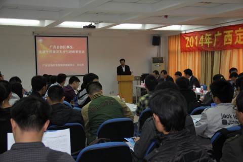 广西组织部的选调生座谈会在叶耀珍楼202室举行,50多名有兴趣的同学与会。座谈会上,广西党委组织部副部长莫达流首先介绍了广西近几年的发展状况及人才需求,介绍了广西2014年招录选调生和引进人才的相关政策。他表示,广西高度重视选调应届毕业生工作,坚持从国内外重点大学定向选调优秀应届毕业生,真诚欢迎复旦大学优秀学子到广西成长、发展。广西自治区优秀选调生代表、复旦大学2012届硕士毕业生朱伟、同济大学2012届博士选调生谢波分别讲述了他们在广西工作的境况和感想。他们从人文关怀、单位待遇、创业平台等方面表达了自己对工作的满意度以及广西选调生的优势所在,鼓励并引导优秀毕业生到基层、到西部地区成长成才,建功立业。