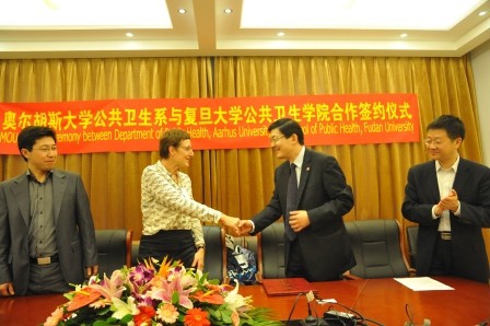 丹麦奥胡斯大学公共卫生系副主任Annelli Sandbæk教授和我院陈文院长代表双方签署合作备忘录(MOU),并分别致辞希望通过合作备忘录带动教学、科研的全面合作。合作备忘录签署后,双方就建立人群研究队列(cohort)和生物样本库(biobank)、开展慢性病控制领域和妇幼健康领域的研究合作进行了深入交流。