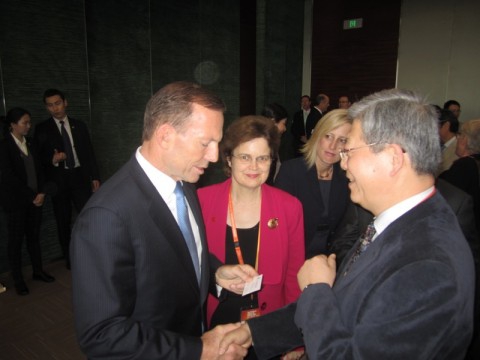 4月11日上午,我校杨玉良校长,应邀参加来访的澳大利亚总理托尼 阿博特(Tony Abbott)在上海世博中心举行的“澳大利亚周 中国”活动的午宴。