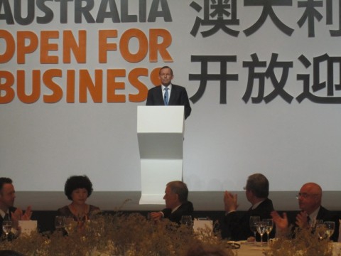 当日午宴的主题是“澳大利亚开放迎商(Australia Open for Business)”,阿博特总理在致辞的开始部分,有点出人意料地用了约有5分钟的时间讲马航失联飞机的搜寻最新进展,“我们已经将马航失联飞机黑匣子的位置确定在几公里范围内”,他还表示,澳大利亚将尽一切努力,继续搜寻。然后他才回到贸易、投资的话题,特别强调中澳之间不仅是贸易关系,更是朋友关系,两国关系比想象中要深,重要性不可估量。