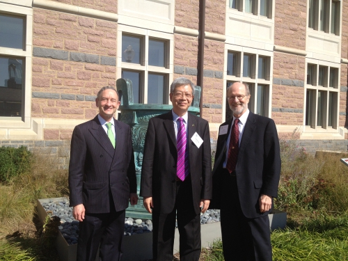 2014年10月12日至21日,杨玉良校长率复旦代表团访问了美国圣路易斯华盛顿大学,参加该校主办的“研究型大学在应对全球挑战中的作用”国际研讨会。复旦大学、香港中文大学、北大、清华、中国农大以及来自澳大利亚、荷兰、新加坡、泰国、韩国、日本、印度、以色列、加纳、智利等高校校长/校长代表到会。美国能源部长Ernest Moniz、«科学»杂志主编Marcia McNutt、孟山都公司主席Brett Begemann等到会并发表主旨演讲。
