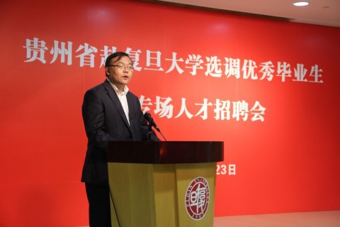 2014年10月23日上午9时,贵州省赴复旦大学选调优秀毕业生暨专场人才招聘会于光华楼学生广场顺利举行。贵州省副省长何力、复旦大学党委副书记尹冬梅等出席了本场招聘会并致辞。