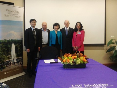 11月5日上午,华山医院邵建华副院长、国际交流中心林建华主任、国际医疗中心顾静文主任、卢燕雯副主任以及康复医学科吴毅主任、朱玉连副主任一行来到位于西雅图的华盛顿大学参观访问,与华盛顿大学医学院以及康复医学系签订双方的新一轮合作协议,并重点参观了华盛顿大学医学院康复医学系和康复医学科。