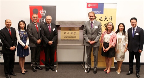 新闻中心讯 3月17日,悉尼大学孔子学院与澳大利亚悉尼最富盛名的男子私校国王学校合作建立的孔子课堂举行了隆重的揭牌仪式,这是澳洲成立的第一所私立男校孔子课堂。国王学校的校长Tim Hawkes博士、中华人民共和国驻悉尼总领事馆副总领事汤瑛女士、悉尼大学孔子学院董事长Duncan Ivison教授和悉尼大学孔子学院院长金杏女士共同为课堂揭牌。