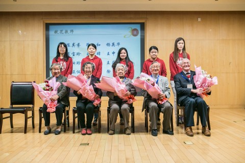 本次论坛还邀请到了原上海医科大学医学系主任王申生教授,以及护理学院陈其芬、杨英华、戴宝珍老院长、刘咸璋、葛汝珍、冯正仪、顾沛、王蓓玲、陈美泉、徐玲等老教师来到现场,接受本科生代表献花。美丽的献花映衬着老师们花白的头发和慈爱的笑容,温馨的场面使校友们为之动容。