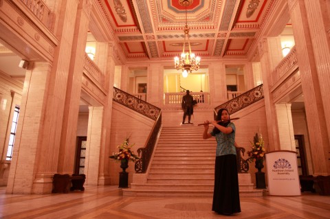 复旦大学民乐团学生在北爱议会大厦的民乐表演