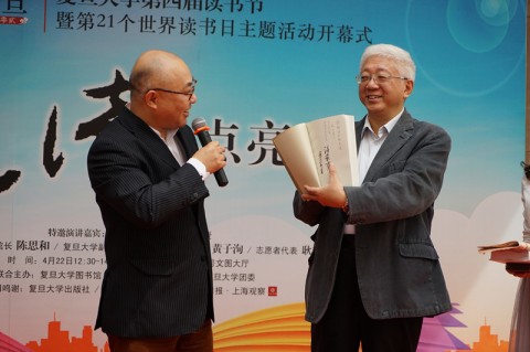 4月22日,在复旦大学第四届读书节暨第21个世界读书日主题活动开幕式上,校图书馆收到一份意外的惊喜: 张力奋教授不仅受邀作为特邀嘉宾为复旦师生讲述了自己“访书”的经历,深情回忆了他和复旦不解的情缘,还精心挑选了5种自己珍藏的具有收藏及研究价值的图书送给校图书馆收藏,为师生共享和利用。