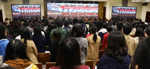 4月30日上午,纪念五四运动100周年大会在北京人民大会堂隆重举行。上午10时30分,复旦大学党委书记焦扬、校长许宁生等学校党政领导和200余位青年师生在光华楼袁天凡报告厅集中收看大会实况直播,聆听习近平总书记重要讲话。下午,复旦大学举行党委理论学习中心组(扩大)学习会,围绕“五四运动的历史意义和五四精神的时代价值”展开专题学习。