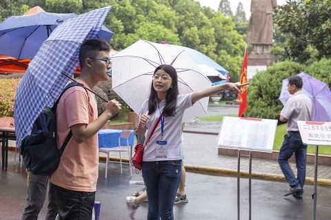 当天,复旦大学领导及相关部门负责人来到报到现场和新生宿舍看望新生和家长,并亲切慰问了服务在迎新一线的工作人员。