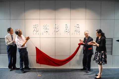 相辉堂的此次修缮和改扩建工程,除了老堂的修缮保护,还新建了一座可容纳751人的现代化多功能剧场,为感谢香港著名企业家、已故资深校董郑裕彤先生对复旦艺术教育事业的慷慨捐赠,复旦特将此剧场冠名为“郑裕彤剧场”。在与会嘉宾们的共同见证下,郑裕彤先生次子郑家成与杨福家、王生洪、许征一起为剧场揭幕,杨福家向郑家成赠送捐赠纪念牌。