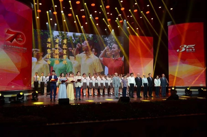 9月9日,在第35个教师节来临之际,“我和我的祖国——上海教育系统庆祝中华人民共和国成立70周年暨上海市庆祝第35个教师节主题活动”在复旦大学相辉堂举行。现场举行了2019年“上海市‘四有’好教师(教书育人楷模)”、2019年上海市“育才奖”和上海市“园丁奖”获得者的颁奖仪式,市领导为获得有关表彰的优秀教师颁奖。