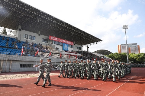 9月15日下午,复旦大学2018级军训汇报大会于南区体育场隆重举行。承训部队首长,校党委书记焦扬,校党委副书记、军训团政委尹冬梅,副校长徐雷,校党委常委、上海医学院党委副书记、副院长徐军以及武装部、学工部、总务处相关负责人出席汇报大会。
