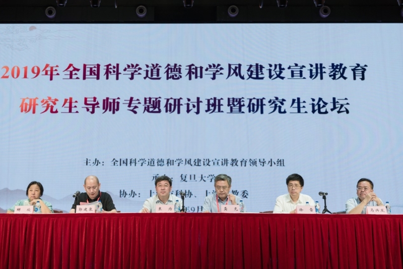 为深入贯彻落实习近平新时代中国特色社会主义思想和党的十九大精神,加强研究生科学道德和学风建设、营造良好的学术生态,由全国科学道德和学风建设宣讲教育领导小组主办,复旦大学承办,上海市科协、上海市教委协办的“2019年全国科学道德和学风建设宣讲教育研究生导师专题研讨班暨研究生论坛”于9月21日至23日在复旦大学举行,教育部党组成员、副部长翁铁慧同志出席有关活动。来自全国科学道德和学风建设宣讲教育领导小组成员单位,承办单位、协办单位的嘉宾,国内高校和科研机构的专家学者和研究生代表以及复旦大学2019年新任研究生导师参加本次论坛。
