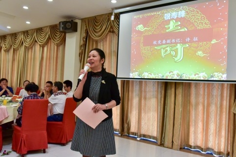 “九九重阳节”即将到来之际,9月24日,机关党委为机关“逢五逢十”生日的退休教职工举行了一场简朴而隆重的集体祝寿活动。校党委副书记许征致祝寿词,机关党委负责同志主持祝寿活动,机关党委委员、部分机关部门负责同志出席祝寿活动。