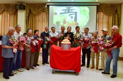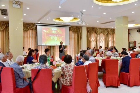 祝寿活动中,机关80多位寿星欢聚一堂,共庆生日。伴随生日祝福歌声,11位85岁以上高龄的寿星作为代表上台接受献花,一起吹灭蜡烛,许下心愿,切分蛋糕,接受敬意和祝福。