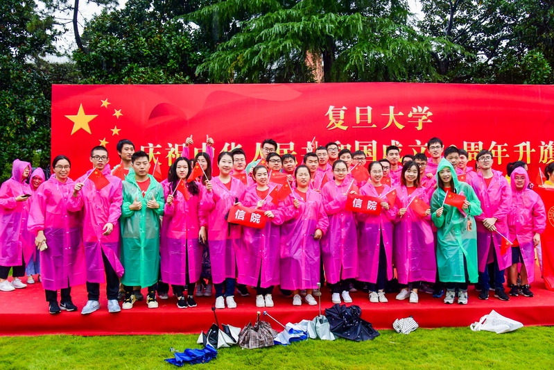 70年光阴流转,伟大祖国风雨兼程,经历了从落后到繁荣、从传统走向现代的深刻演变。10月1日,复旦大学庆祝中华人民共和国成立70周年升旗仪式在各校区举行。当天上午8:30,信息科学与工程学院47名师生代表风雨无阻,前往邯郸校区国旗草坪前参加升旗仪式,同庆新中国成立70周年。