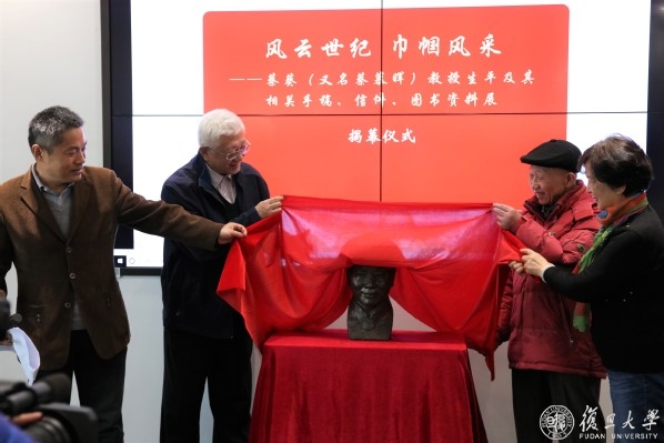 陈振新、陈思和随后为“风云世纪 巾帼风采——蔡葵教授生平及其相关手稿、信件、图书资料展”揭幕。其他与会嘉宾进行了简短的发言。