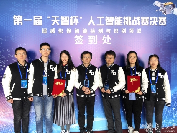 2019年12月18日,第一届“天智杯”人工智能挑战赛决赛在北京落下帷幕,复旦大学电磁波信息科学教育部重点实验室金亚秋院士团队的徐丰教授和王海鹏副教授率领深见队(成员:侯晰月、宋倩、岳冬晓、钱昱彤)和深识队(成员:郭倩、卢思佳、符士磊),入围遥感影像智能检测与识别领域的两个科目的决赛,均获得了冠军。