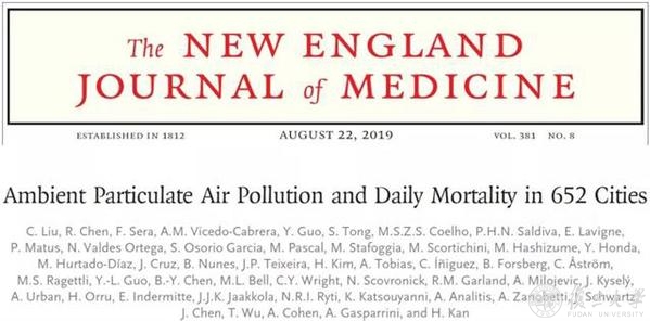 近日,《新英格兰医学杂志》(NEJM)编辑部公布2019年度12篇最佳论文。由复旦大学公共卫生学院阚海东教授领衔、来自22个国家或地区的研究者参与的论文《652个城市的大气颗粒物污染与每日死亡率的关系》入选2019年度最佳,这也是其中唯一来自中国科研团队领衔的论文。