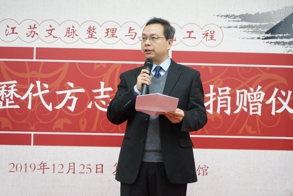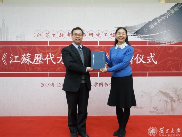 2019年12月25日上午,《江苏历代方志全书》捐赠仪式在复旦大学图书馆举行。江苏省地方志办公室党组书记、主任左健伟,上海市地方志办公室党组书记、主任洪民荣,复旦大学党委副书记尹冬梅等出席仪式。