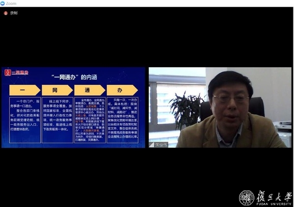本次开班仪式特别邀请了上海市大数据中心副主任朱俊伟作首场专题报告“上海:从‘一网通办’到‘一网好办’”。他介绍了上海市自2018年以来“一网通办”的在线政务服务,从“能办”到“好办”转变,加大环节精简和流程优化再造,进一步拓宽服务事项,畅通受理渠道,从被动服务到主动服务转变,以群众切身感受体现了上海市改革的成效。