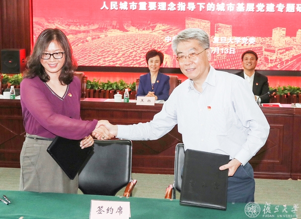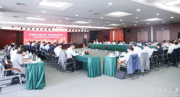 自1922年落址杨浦以来,复旦在杨浦已扎根近百年。30多年前,区校开始启动实质性合作。2012年,杨浦区委和复旦大学党委联手其他14家党组织,发起成立了全市首家区级层面的区域化党建联盟,共同推进思想成果共享、人才共育、产学研共促、服务共推、政策共商、制度共创。学校党委把参与支持杨浦的区域化党建作为坚持社会主义办学方向、扎根中国大地办学的重要抓手,结合到人才培养、科学研究、服务社会各个方面。近年来,各院系、广大师生积极参与杨浦区和各街道的区域化党建工作,每年杨浦区接收超过200名复旦学生到各级各类党政岗位实习实践,学校一批优秀学者成为“社区政工师”,博士生讲师团走进各个社区,各二级党组织与12个街镇党(工)委结对共建,建设运行党员志愿服务实践基地。