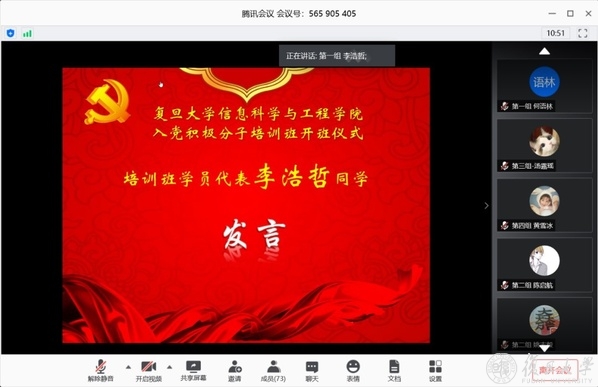 培训班学员代表李浩哲在发言中呼吁各位同学从思想上、作风上、行动上全方面、全身心地接受培训。要从疫情中深刻认识到党的领导的必要性与正确性,更要珍惜机会、努力学习、提高党性,争取早日通过考验,成为真正的共产党员。他也代表所有培训班成员郑重承诺,将以最饱满的热情、最端正的态度投入到培训学习当中。