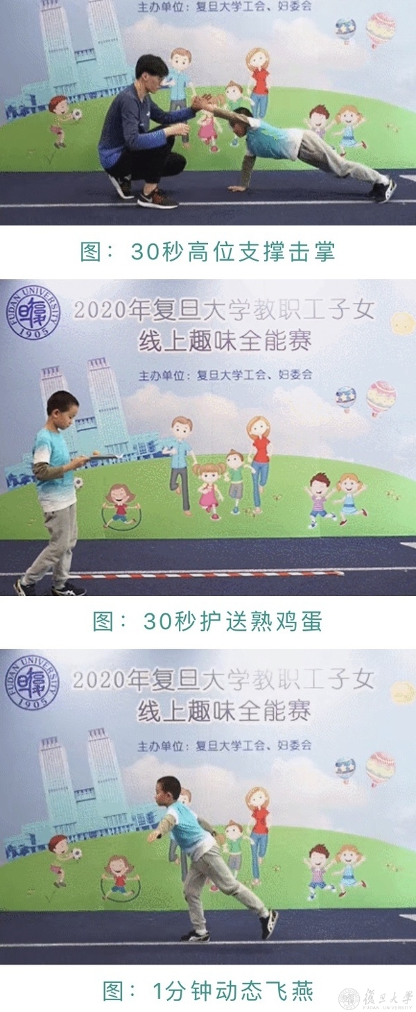 在疫情防控的特殊时期,为丰富教职工与子女的居家生活,提升亲子关系,营造和谐家庭环境,复旦大学工会利用互联网技术,于五月举办了别开生面的“教职工子女线上趣味全能赛”,共有87个家庭的97名小朋友参加了此次比赛。