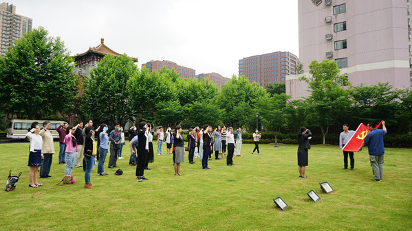 在分会场,来自基础医学院党委、基础医学院人体解剖与组织胚胎学党支部、公共卫生学院妇幼与儿少党支部的30余名党员在枫林校区颜福庆像前重温入党誓词,开始红色行走。