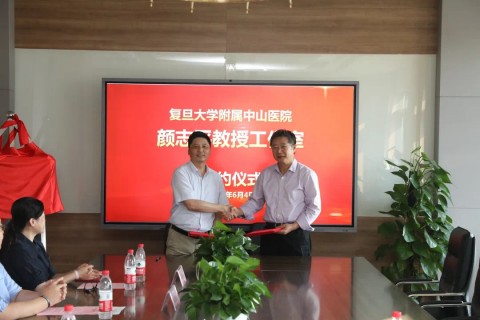 6月4日,“复旦大学附属中山医院颜志平教授工作室”签约揭牌仪式在金山医院科教楼举行。院长沈辉、副院长朱洁及相关职能部门和临床科室负责人参加签约揭牌仪式。