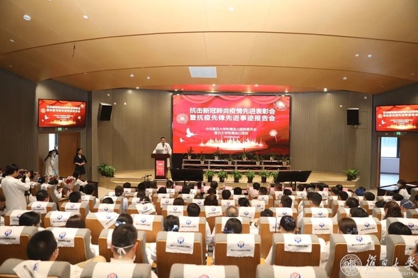 聆听榜样故事,汲取榜样力量。在抗疫先锋先进事迹报告会上,附属金山医院抗疫先锋代表——援鄂队员周海英、张文英、陆美华、郭孙升、罗春,新冠防控临时党支部书记张峰,以及感染科乔兵现场讲述他们的抗疫故事,聆听者身临其境感受他们在危险中的坚强、在逆境中的成长、在困难中的坚守。抗疫先锋代表所在科室代表纷纷上台献花、拥抱。医患情、战友情、姐妹情、亲人情......一个个故事催人泪下,也催人奋进,会场上时有压抑的抽搐声、感动的鼓掌声。