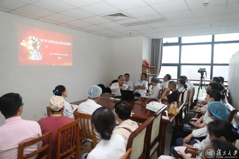 6月18日晚上,附属金山医院内科党支部邀请上海市先进工作者、老职工刘国平为党员们上了一堂“四史”专题党课《“老”职工眼中金山医院发展史》。