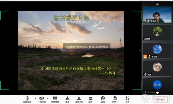 6月22日晚,复旦大学先进材料实验室研究生会,联合南京大学化学化工学院的学生共六个学生党支部,通过腾讯会议平台,共同举办了“脱贫攻坚——驻村第一书记讲脱贫”的活动。此次活动由先材研究生会组织,李思同学主持。