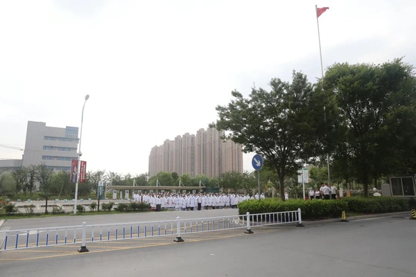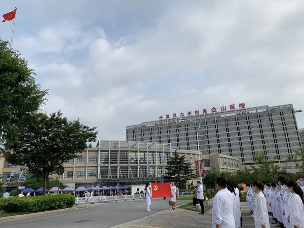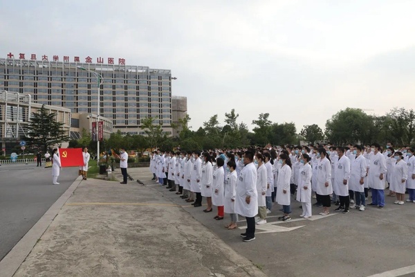 7月1日清晨,在院党委书记陈刚的带领下,附属金山医院100余名党员自发聚集到医院南广场,迎着初升的朝阳,唱响心中的旋律,发出铿锵有力的誓言,用无比坚定的信念庆祝中国共产党成立99周年。