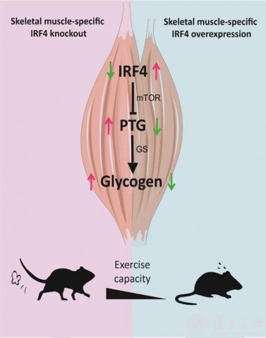 生命科学学院刘铁民课题组揭示骨骼肌IRF4通过PTG/糖原途径调节运动能力的新机制