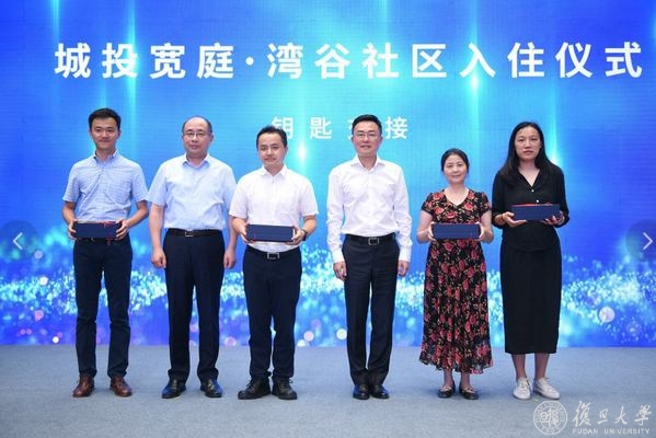 2020年8月8日,在复旦大学和上海城投集团签订战略合作协议一周年之际,上海城投集团租赁住宅品牌“城投宽庭”湾谷社区入住仪式顺利举行。这也标志着,发挥“校企联动、资源共享”新模式优势,落实教师关切的民生工程,破解制约“引才留才”的住房瓶颈问题——这桩“美事”终于结成了第一批“果实”。副校长张志勇,党委副书记、副校长周亚明,杨浦区副区长徐建华和上海城投集团副总裁周浩等领导及入住学校整体租赁房的多位教师代表参加了本次入住仪式。