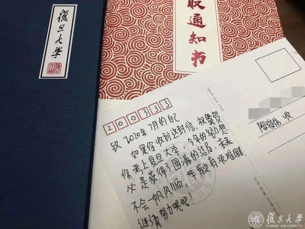 念念不忘,必有回响!8个月后,如愿以偿,明信片和录取通知书已经送到他的手上,杨同学表示,梦想获得实现让他有一种有始有终的感觉,无愧于自己付出的努力,向过去欣然告别,迎接在复旦的未来。