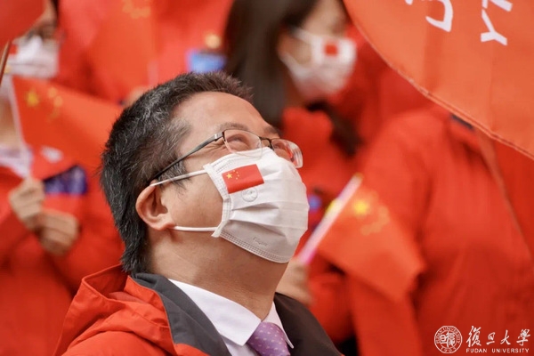 朱畴文老师正在参加中山医院援鄂医疗队返院仪式