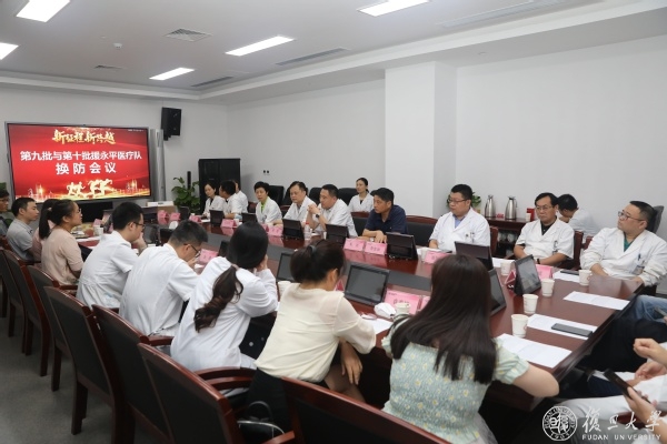 为继续落实好附属金山医院与永平县人民医院医疗帮扶协作精神,推进帮扶工作顺利进行,同时为第二轮支援永平县人民医院工作进行前期部署,9月1日下午,援永平第9批与第10批医疗队换防会议召开。会议由附属金山医院副院长周晓东主持,党委书记陈刚、副院长朱洁、党委副书记石卫红、医务部主任李宏治、人力资源部主任张莉、相关临床科室主任及两批队员参加。