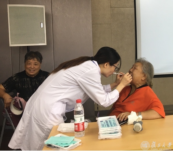 知识讲座结束后是口腔检查互动环节。老人们积极提问,就口腔问题开展热烈的交流,团队成员予以耐心解答。胡松玲细心地给老人们检查牙齿,并提出了合理化建议,得到了老人们的认可和赞扬。