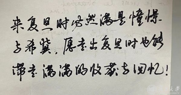 复旦大学在我心里一直是优秀大学的代名词,这里不仅有极其优秀的老师与同学们,更有我期冀的自由、包容而又不失责任与攀登精神的学习环境,以及丰厚的机遇。