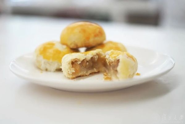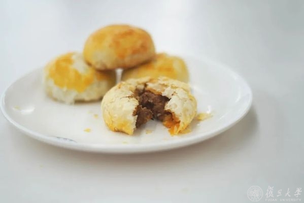 旦苑一楼的当家花旦~虽然看上去貌不惊人,口感可是一级棒!在下雨的清晨,刚出炉的月饼还热腾腾地冒着气,捧在手里,让人不由得感到温暖。烘烤过的月饼表皮酥脆,透着鲜香四溢的肉汁味道;内里足足的馅料劲道而不肥腻,相比甜月饼更适合一口吞。唯一的缺陷可能是很容易掉渣,难以优雅地吃完一整只月饼。