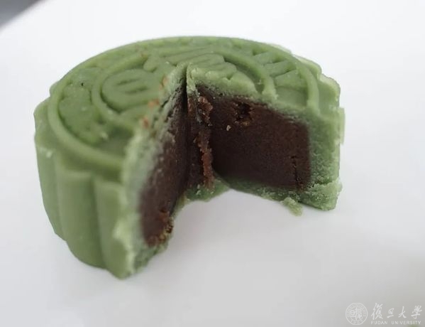 桃山月饼是日式月饼中一种独特的风味,类似于我们常见的和果子,口感细腻而柔和。如草木春天般青绿的“复旦”外皮,入口却并没有浓厚的抹茶味,那股清淡的糕点香味,被内馅里红豆沙浓重的甜香完全遮盖,恰似“绿瘦红肥”。豆沙口感绵密,跟外层的桃山皮完美融合,丝毫没有传统月饼那样皮馅分离的口感,入口松软而细腻,精致满分!不过回味略偏甜,不喜甜的小伙伴谨慎一试哦!