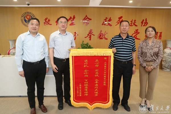五年来,医院对口帮扶工作已卓见成效,为了表达对附属金山医院帮扶工作的感激之情,阿泽新亲自将一面印有“真心帮、实意扶,永平医疗大进步;医疗队、会诊网,百姓健康有保障”的锦旗送到沈辉手中,并向附属金山医院赠送感谢信和对口帮扶永平县成果图集。火红的锦旗、暖心的感谢信代表着永平县人民对附属金山医院长期不遗余力的倾心帮扶致以由衷的谢意。阿泽新表示,附属金山医院的无私帮扶,解决了永平老百姓最需要、最实际的问题,我们代表18.5万永平各族人民向金山医院表达感恩之情。陈刚表示,锦旗与感谢信既是对附属金山医院帮扶工作的肯定,更是鞭策和鼓励,通过对口帮扶,双方建立起了深厚友谊和感情,医院也将把这种帮扶精神继续传承和发扬下去,今后,医院将一如既往、再接再厉,真扶贫、扶真贫,办实事、办好事,与永平县县委县政府同心合力,将永平的医疗卫生事业建设得更加美好。