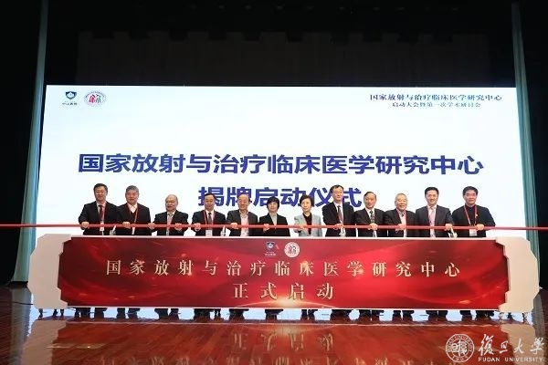 上海市副市长宗明、复旦大学党委书记焦扬等共同为“国家放射与治疗临床医学研究中心”揭牌,同时向首期认证的20家“国家放射与治疗临床医学研究中心分中心”和94家“国家放射与治疗临床医学研究中心核心单位”授牌。