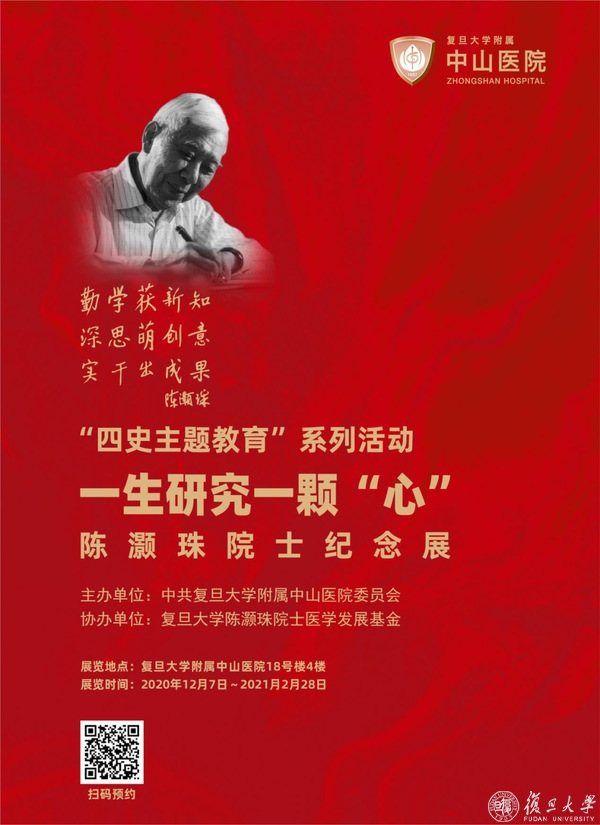 陈灏珠院士是中国当代心脏病学主要奠基人之一,著名心血管病学家和医学教育家,复旦大学附属中山医院终身荣誉教授,上海市心血管病研究所名誉所长。2020年10月30日,陈灏珠院士因病医治无效在上海逝世,享年96岁。逝者永恒,无尽怀念;薪火传承,精神永驻。陈灏珠院士纪念展将以文字、图片、实物、视频等多种形式缅怀陈灏珠院士,通过“学”“医”“研”“教”“爱”五个版块,追忆他精彩丰富的人生、闪耀光辉的人格魅力及其为国为民做出的卓越贡献,弘扬他高瞻远瞩、开拓创新的科学精神和为医学事业奋斗终身的奉献精神。