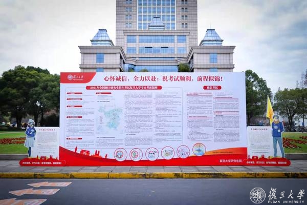 “欢迎报考复旦大学,祝你成功!”来自复旦的祝福在风中飘扬,在考研征途中跋涉的旅人,别紧张,有人为你指路、与你同行、候你凯旋。
