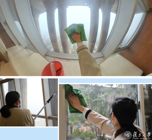 我擦上玻璃窗时,见过窗外的日月星辰,听过窗内的琅琅书声,白天的阳光透过窗照在学生往来的步伐上,夜晚的灯光将学生们灯下的身影投向窗外。我们认真地拭净窗上的灰尘,除了窗户上往来的人影,不留痕。