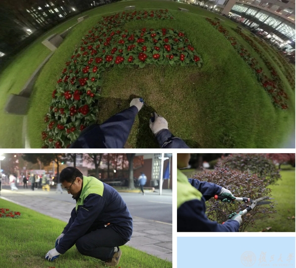 我眼中校园就如同一块璞玉,等着我去雕琢。我修剪草坪,栽培园艺花卉,用肥红瘦绿为复旦妆成新锦簇,我把花园种进学校,也种进学生们的眼中。